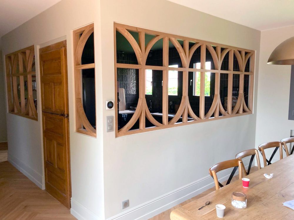Pour ce projet à Charnay-lès-Mâcon, nous avons conçu et installé des verrières en chêne massif avec une finition vernis mat incolore, alliant élégance et durabilité. Dessinées en collaboration étroite avec nos clients, ces verrières s’intègrent parfaitement à l’esthétique de leur maison, tout en apportant luminosité et style à l’espace rénové.