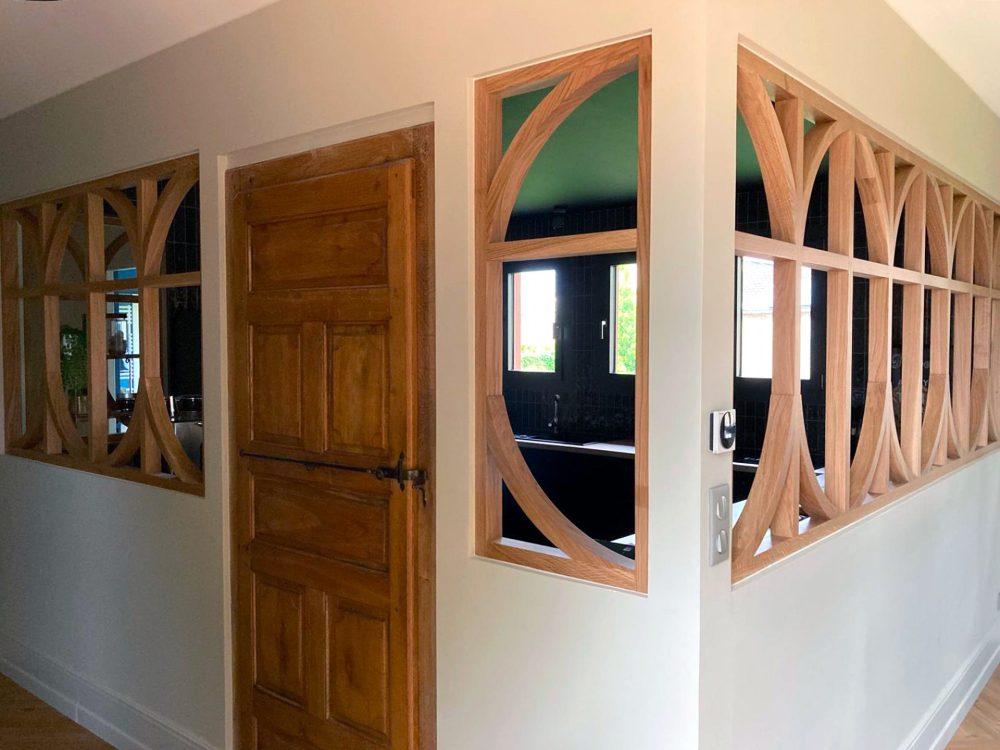 Fabrication et pose de verrières en chêne massif dans une maison rénovée